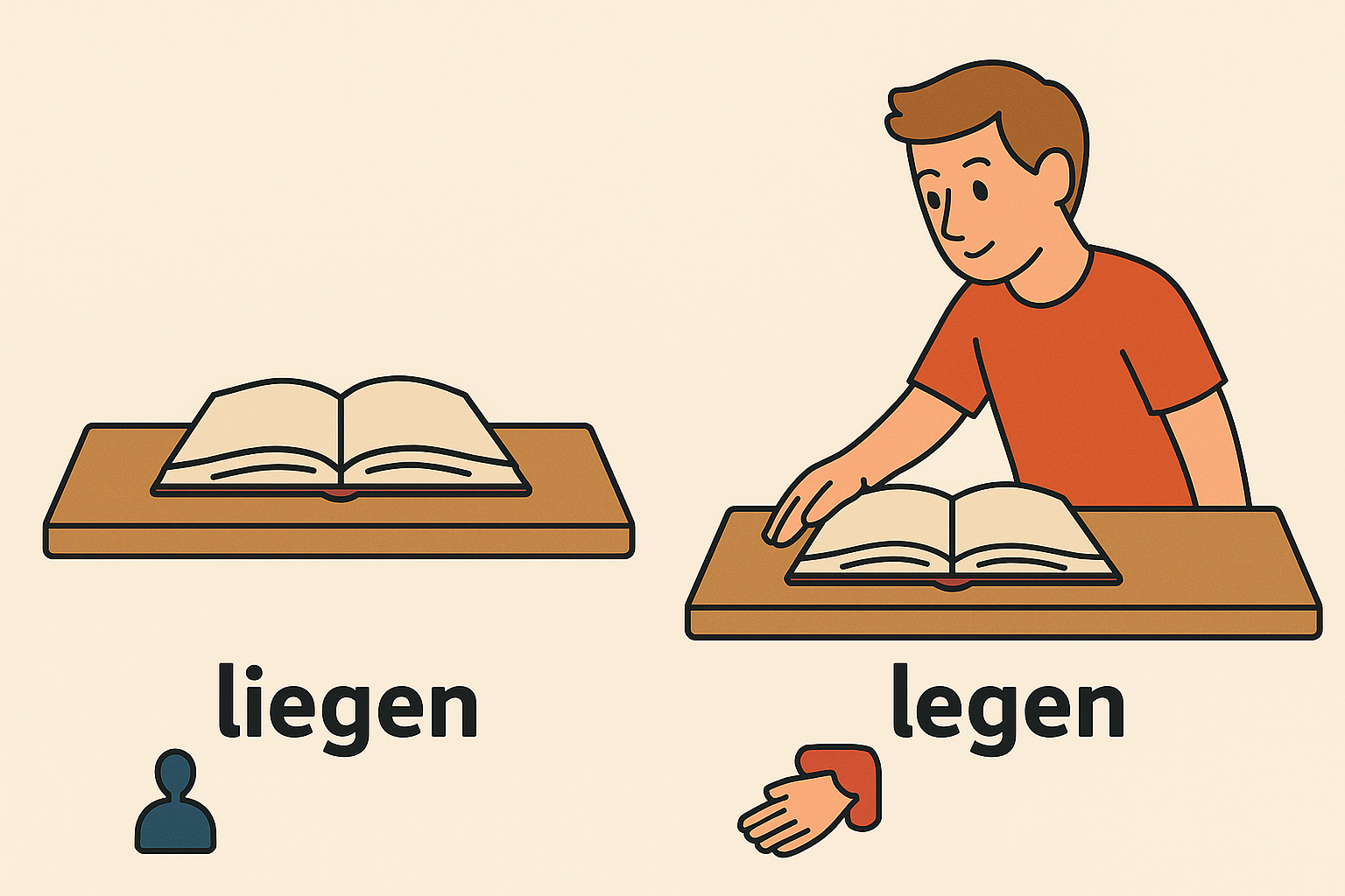 - Das Buch liegt auf dem Tisch. Kniha leží (kde?) na stole.