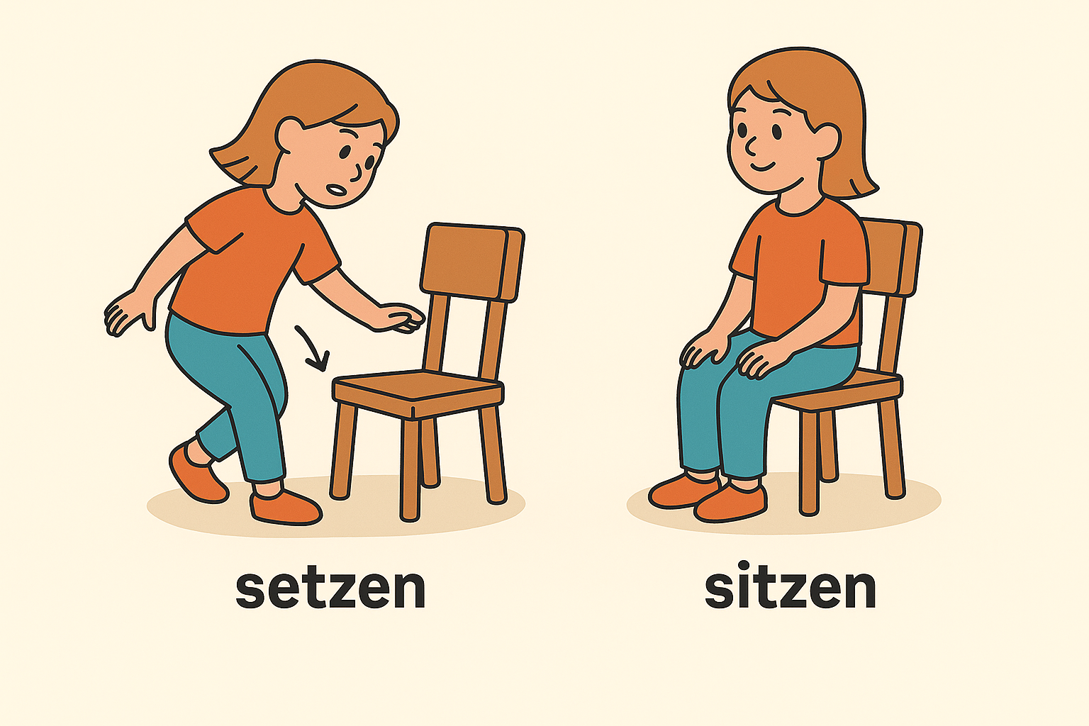 - (sich) setzen (posadit (se)), stellen (postavit), legen (položit, lehnout si) und hängen (pověsit) se pojí se 4.p.